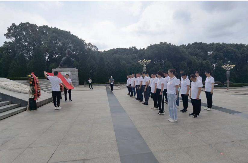 9日上午7点,武汉红色教育培训班全体42名学员准时从武汉出发前往红安县。我院安排的首场课程安排在湖北省红安县鄂豫皖苏区革命烈士陵园进行现场教学,在教学活动中设计了敬献花篮、向革命烈士默哀、党员重温入党誓词及全体合影环节,旨在缅怀革命先烈,继承革命传统,不忘初心,牢记光荣使命。这既是两个党支部联手对建党101周年的隆重纪念,更是对全体党员一次深刻的红色教育体会。